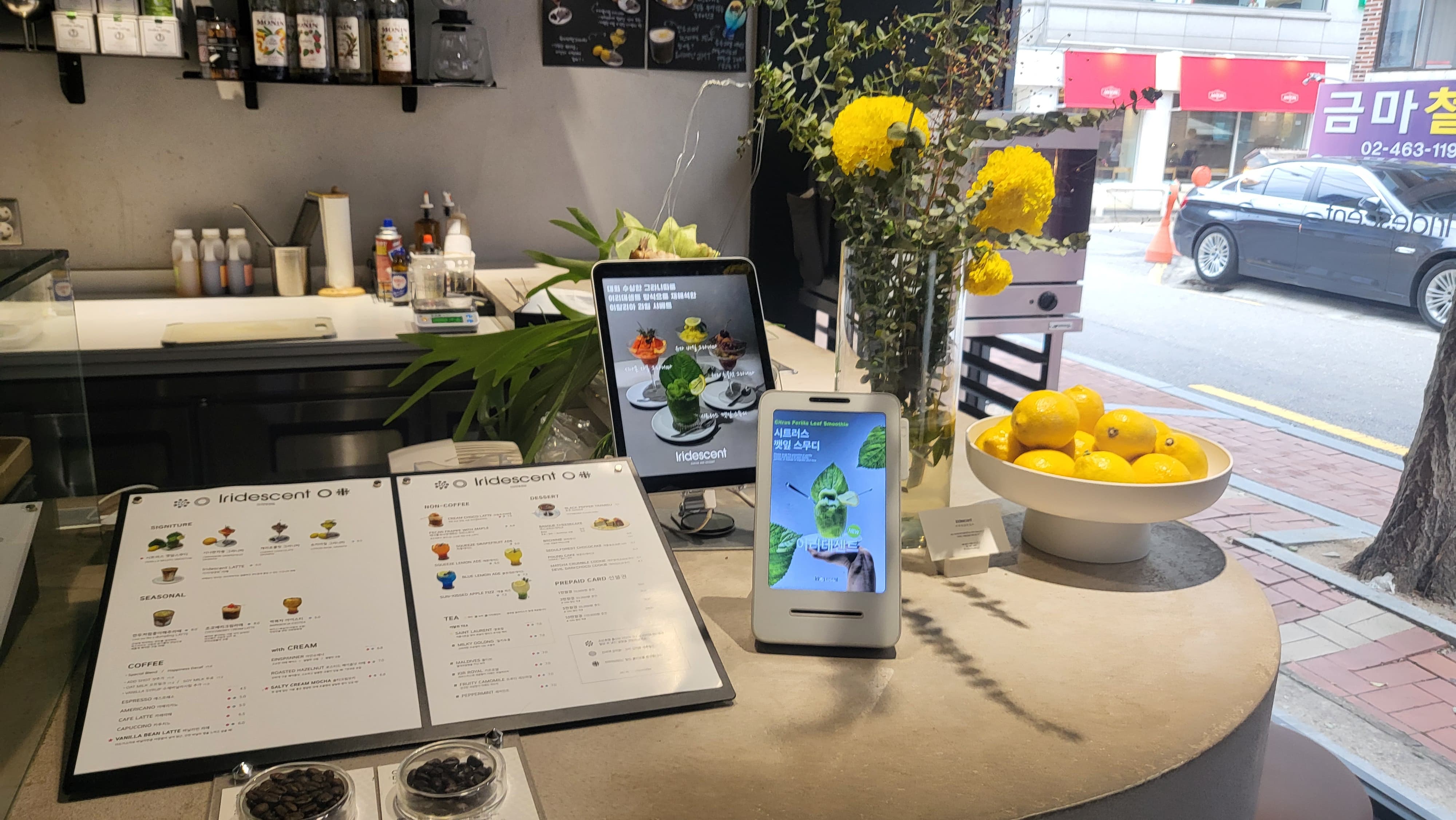 매장 내부 매장내부는 딱 보시다시피 아주 모던 하고 이쁘게 인테리어 되어 있어요. 곳곳에 생화를 꽂아두어서 매장 내부가 아주 프레쉬하고 이쁘답니다.